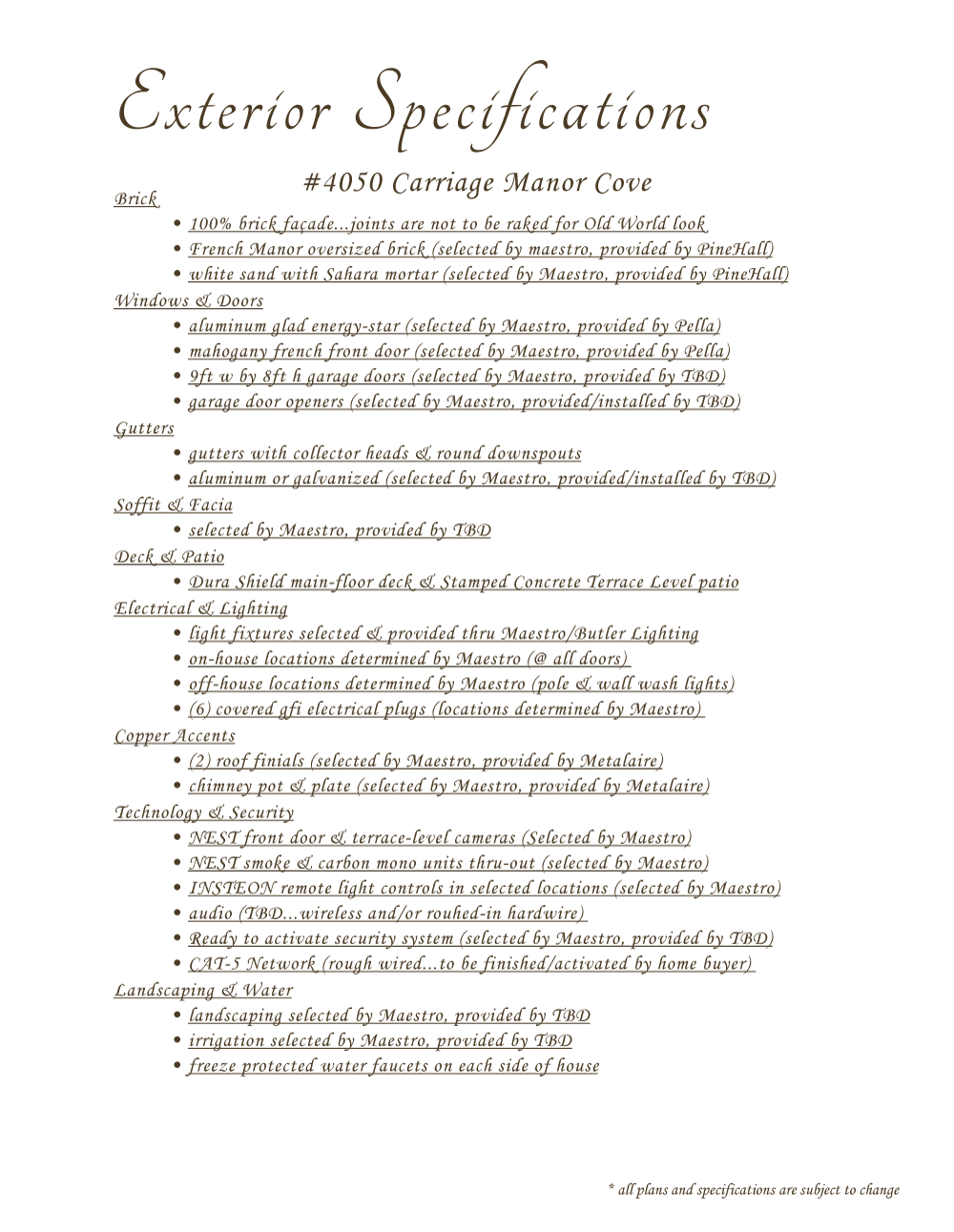 Exterior Specifications