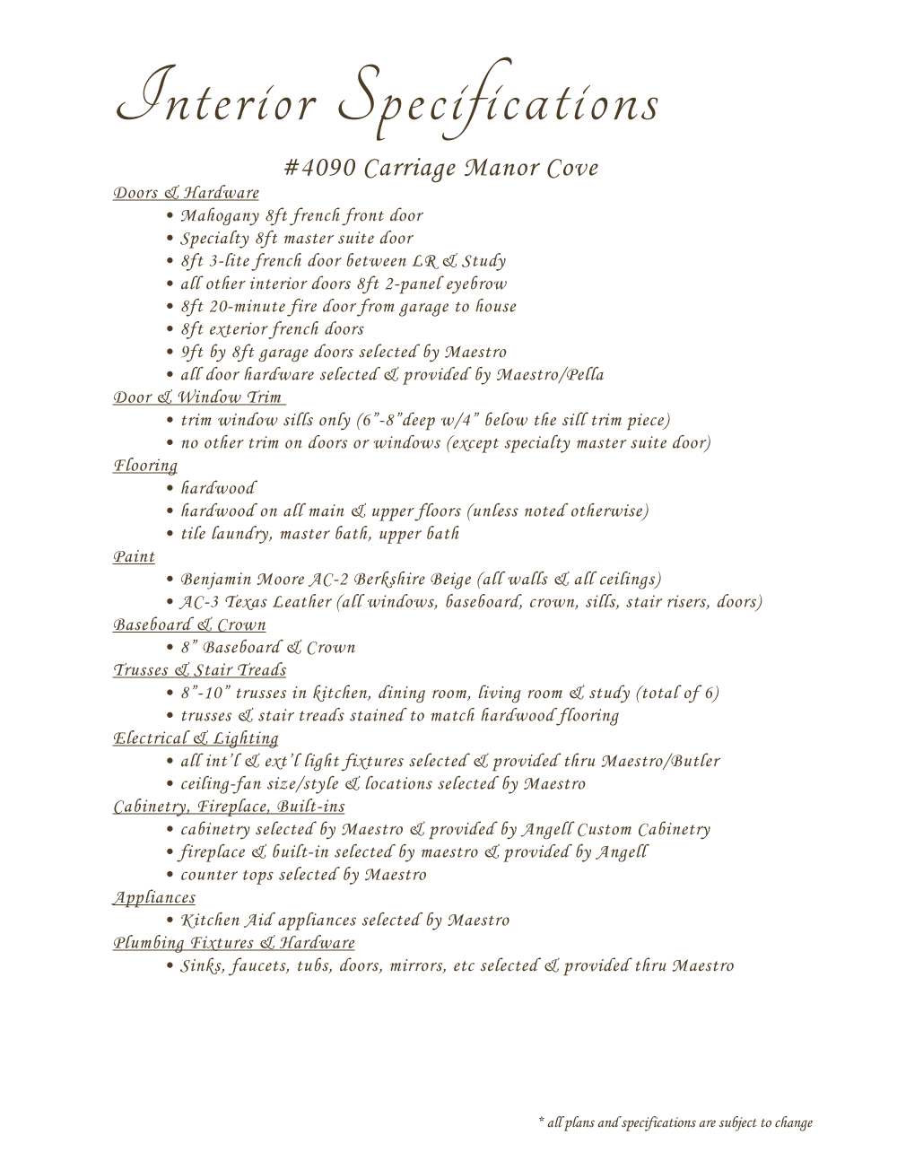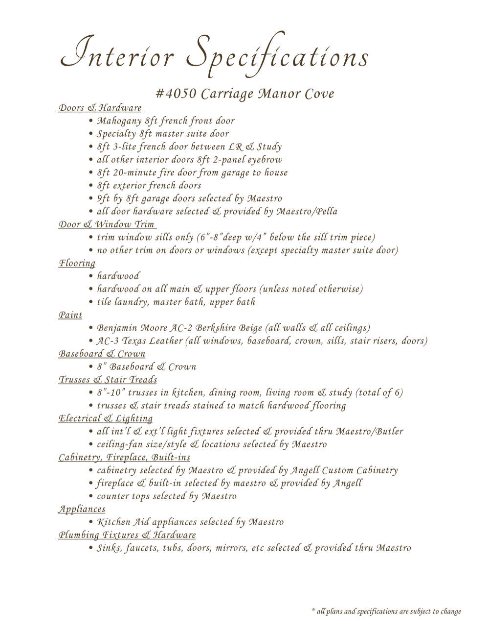 Interior Specifications